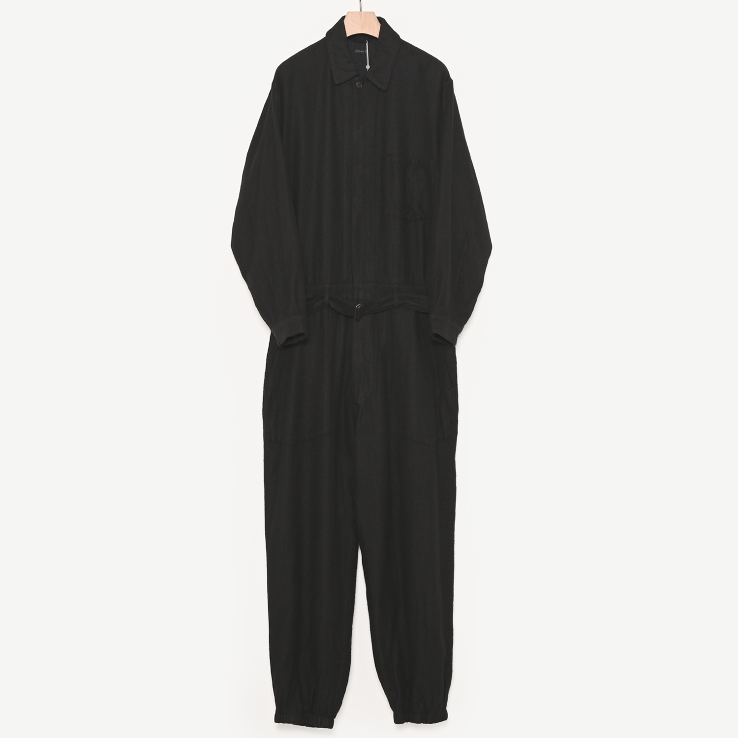 「カシミヤシルクフロックコート」、「カシミヤシルクテーパードパンツ」と同生地を採用したオールインワン。